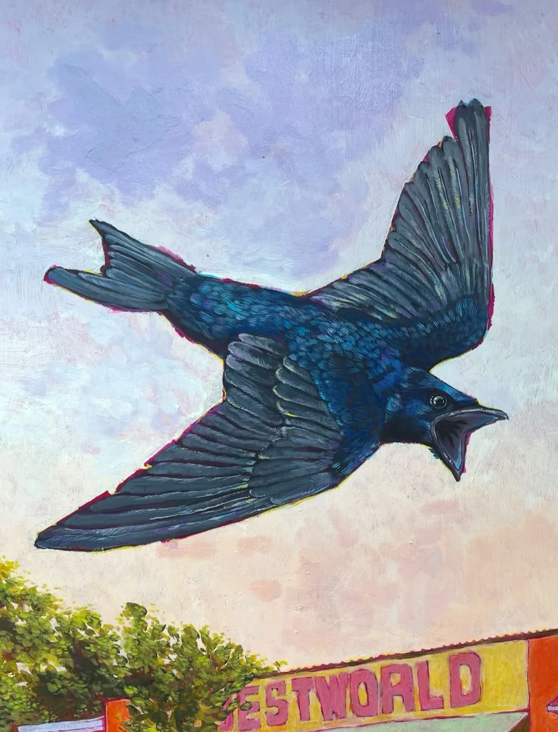 Dusk, 2025, Gouache, Acrylic and Colored Pencil on Board, 11" x 14”